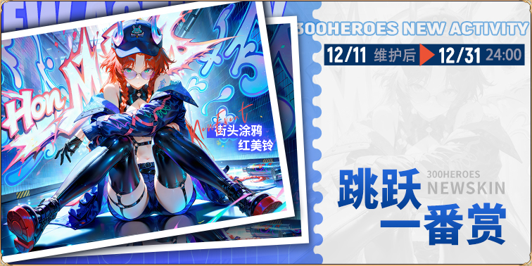活动内容:活动期间使用商品券购买赏品可获得奖池奖励;本次奖励包含全新皮肤街头涂鸦(红美铃)和新战场装备天候棒