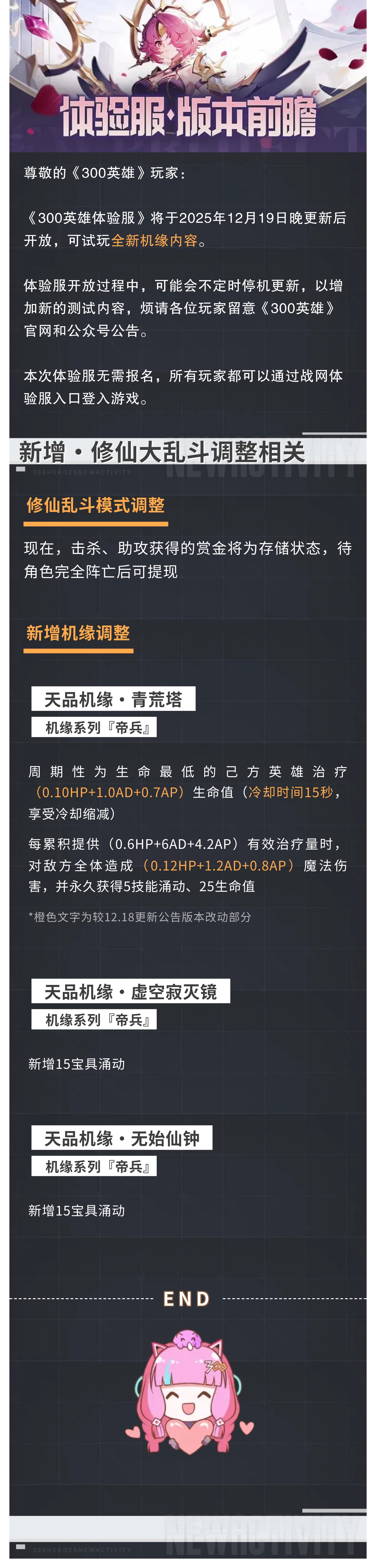 《300英雄体验服》将于2025年12月19日晚更新后开放,可试玩全新机缘内容。