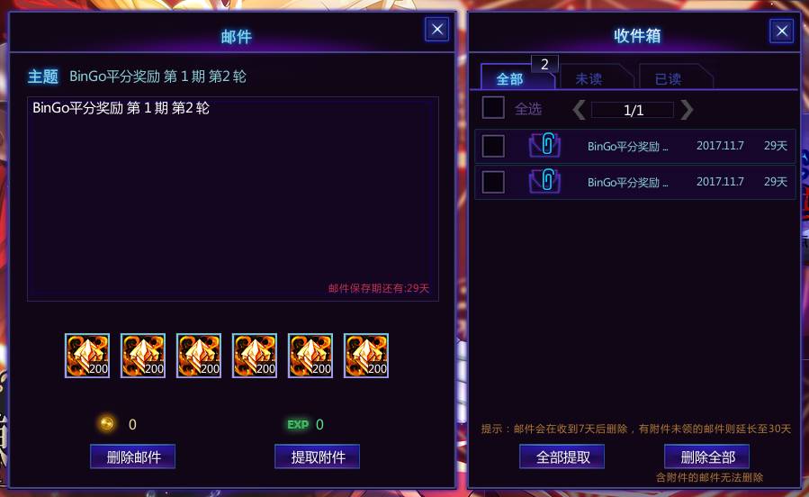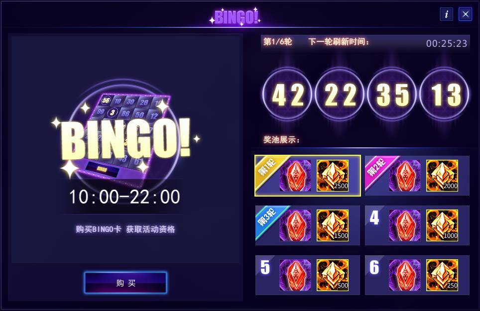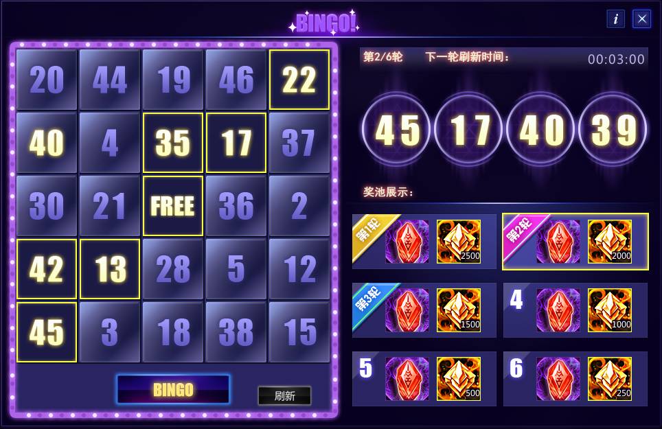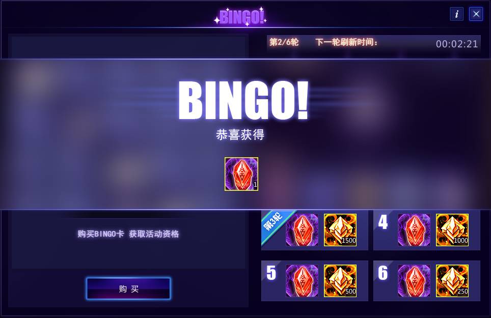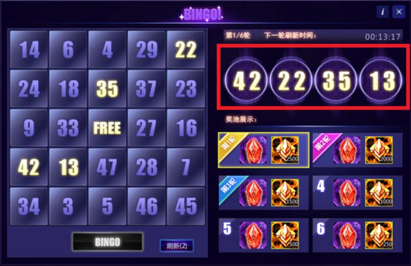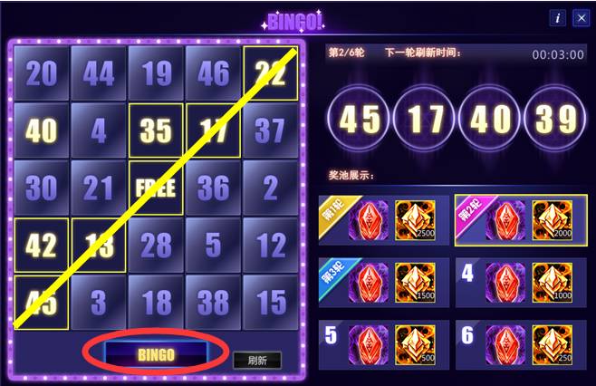 1. Bingo奖励分为6轮,获得奖励的档次取决于bingo时当前的系统轮数(当然是轮数越小奖励越高啦)