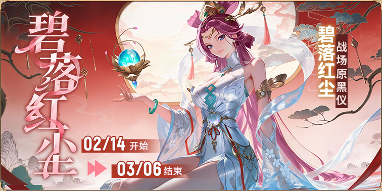 活动内容:活动期间消耗荆棘玫瑰获取皮肤 碧落红尘(战场原黑仪)