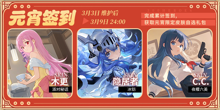 活动内容:累计登录3天,领取元宵限定皮肤自选礼包