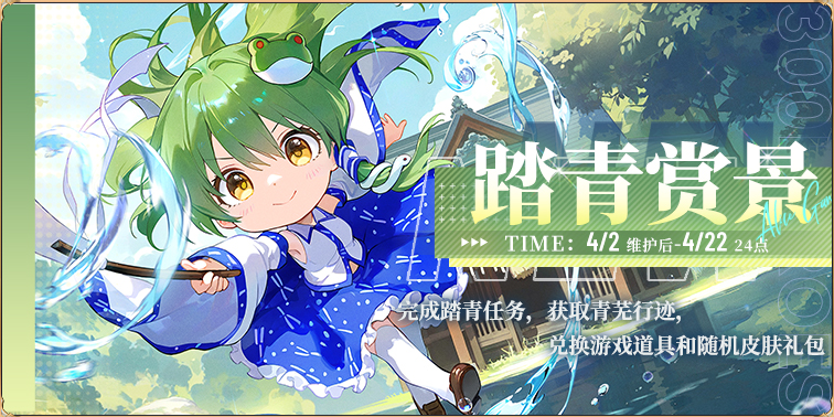 Ⅰ 踏青任务 & 踏青兑换 活动期间完成踏青任务,获取青芜行迹,该道具可用于在限时兑换处兑换各类游戏道具
